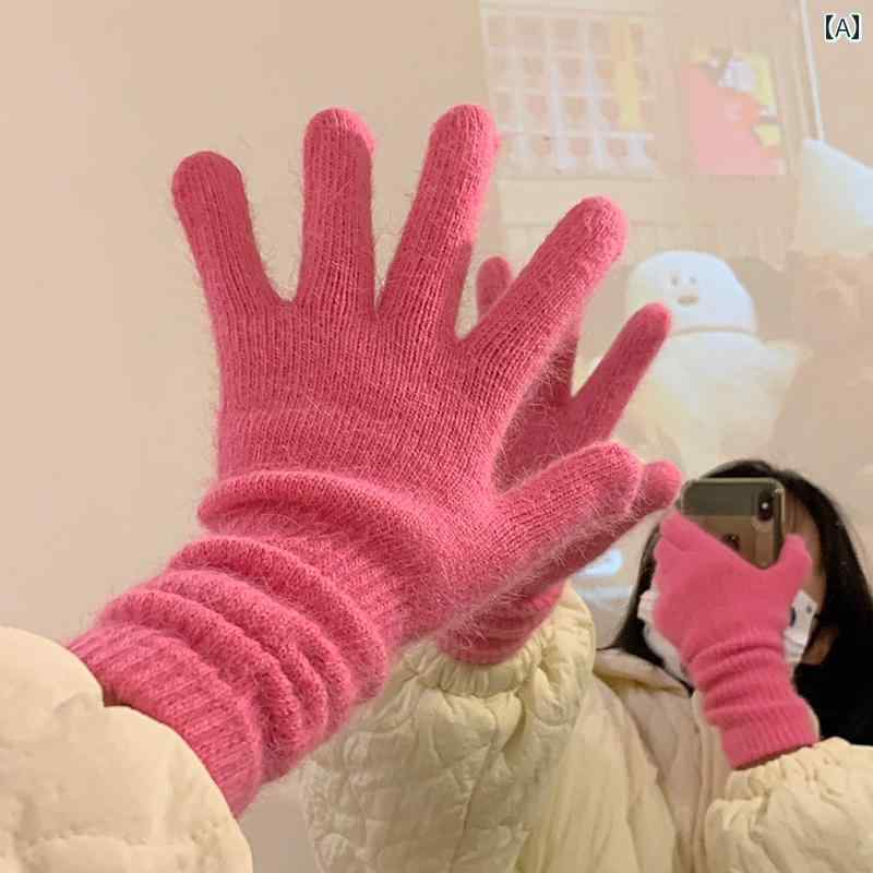 レディース 冬 ニット ウール 韓国 ウサギ ぬいぐるみ 手袋 用 かわいい 無地 長い 厚手 暖かい 耐寒性 サイクリング