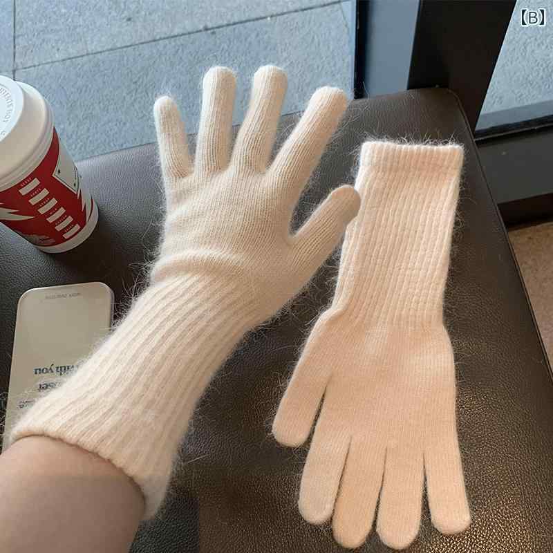 レディース 冬 ニット ウール 韓国 ウサギ ぬいぐるみ 手袋 用 かわいい 無地 長い 厚手 暖かい 耐寒性 サイクリング 【予約販売5~12営業日での発送】 ウエア