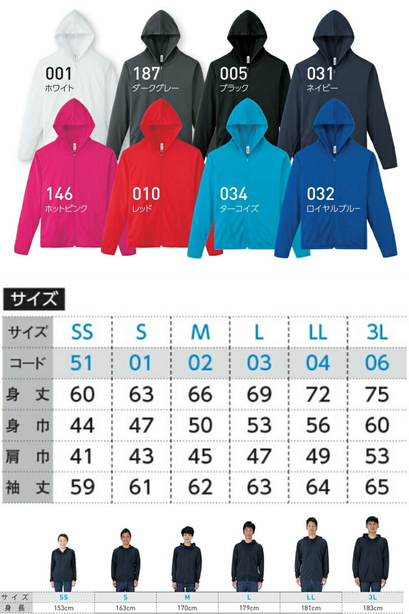 タグ:ブラック ,ポリエステル ,ジップアップパーカー ,グリマー ,3L ,M ,S ,LL ,SS ,L